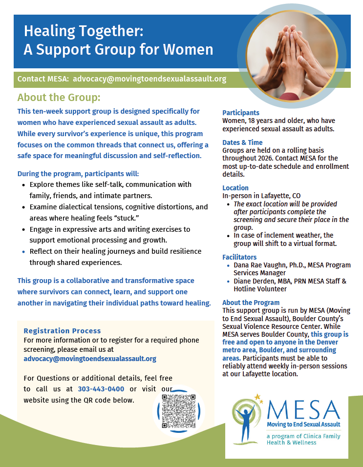 - Open to women in Boulder County, the Denver metro area, and surrounding communities
